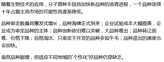 与大品种沾亲带故、似曾相识、市场价值形同鸡肋的品种将会被继续批量审定出来。